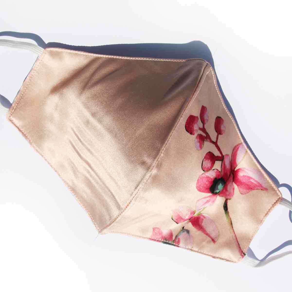 One of a kind floral Italian Silk charmeuse face mask with 100% cotton center. Lined with 100% Egyptian Cotton. Ships in 1 to 3 business days in Kate Stoltz Box