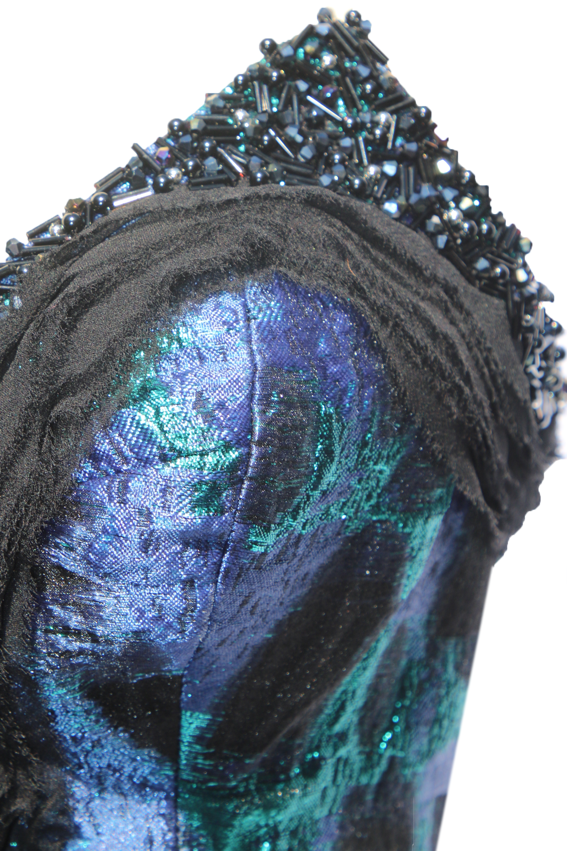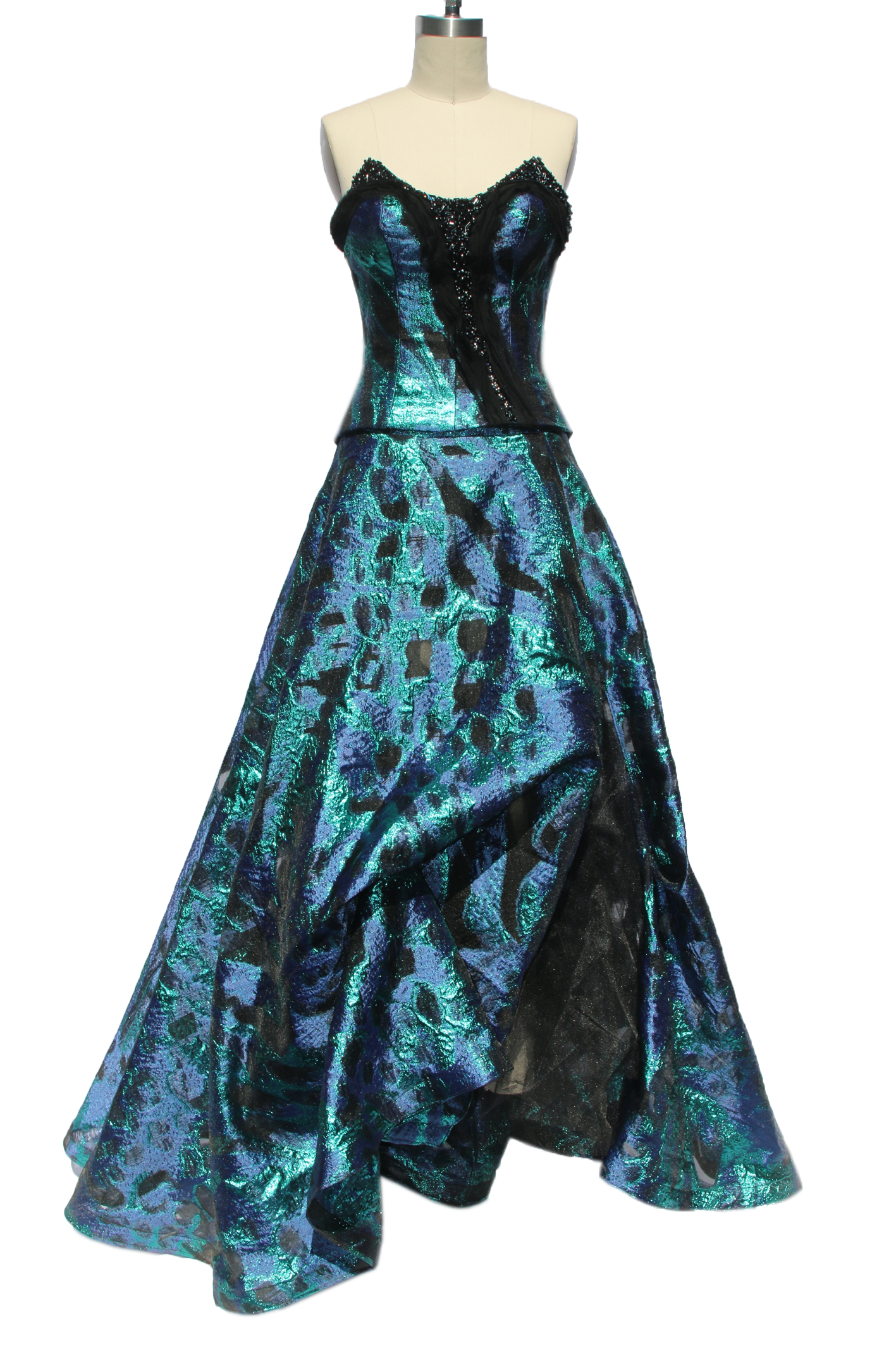 Jewel Toned Hand Beaded Burnout Organza Gown